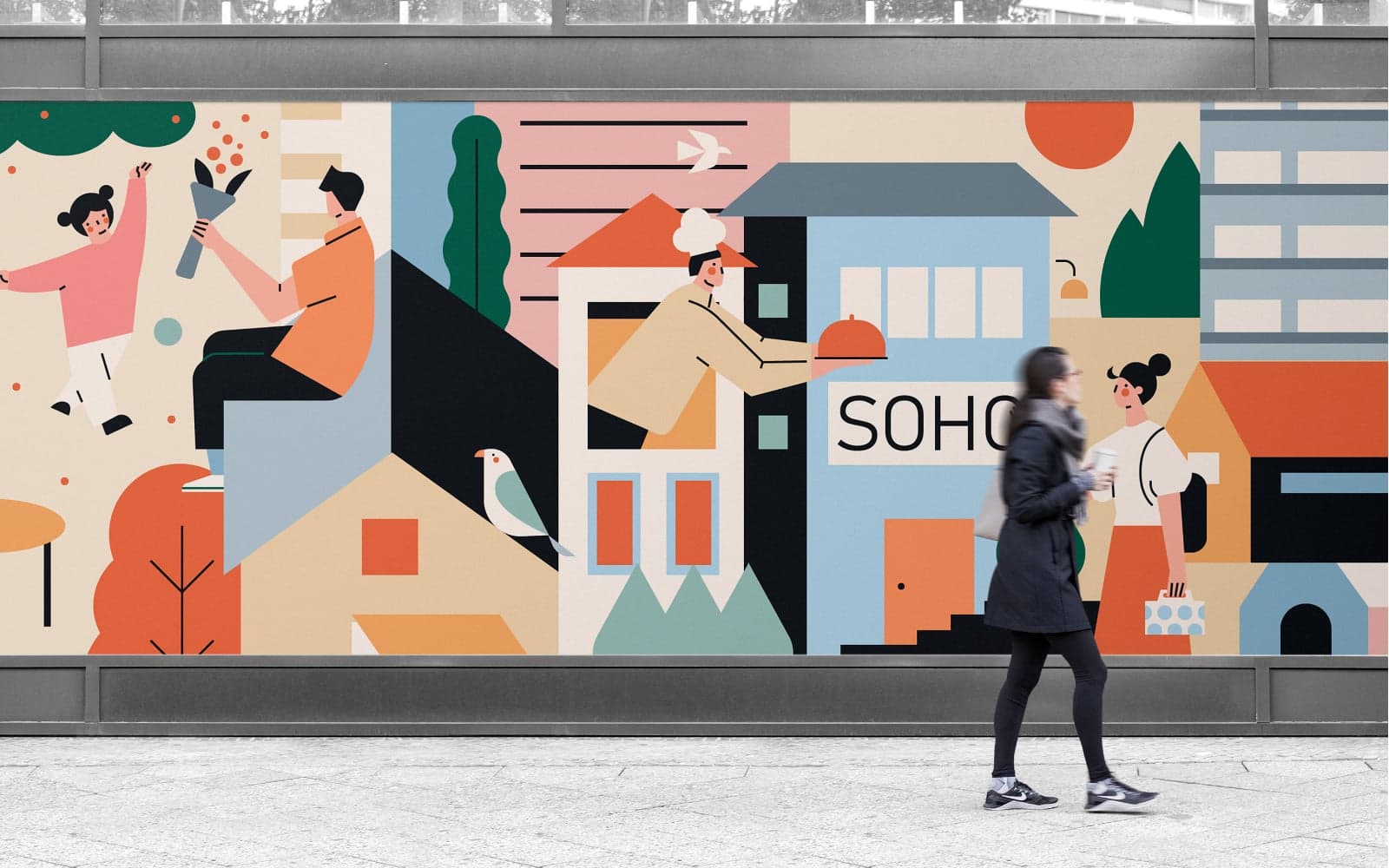 使用元素:人物、儿童、建筑、植物、家居、形状 | 配色风格:静涩奶蓝