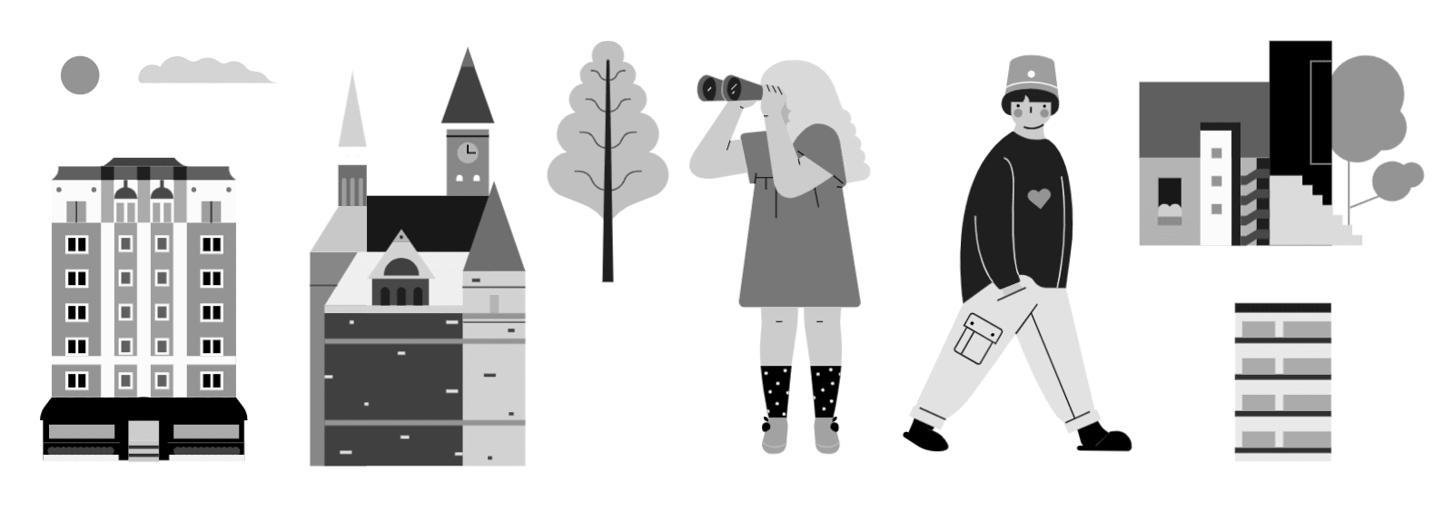 使用元素:儿童、建筑、植物、形状、天气 | 配色风格:春和景明