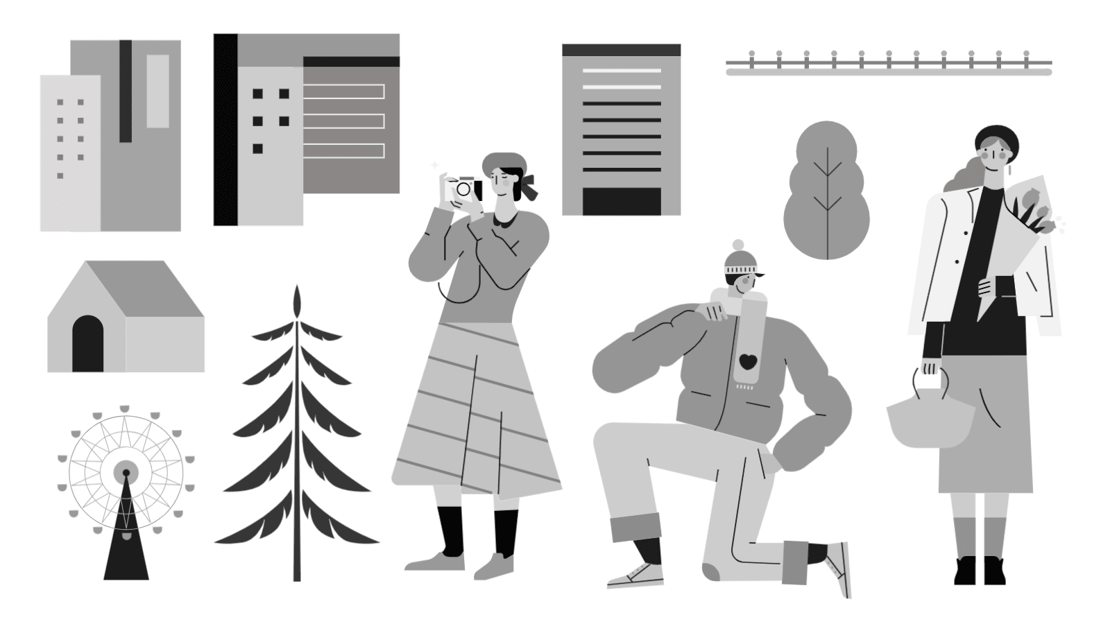 使用元素:人物、植物、建筑 | 配色风格:静涩奶蓝