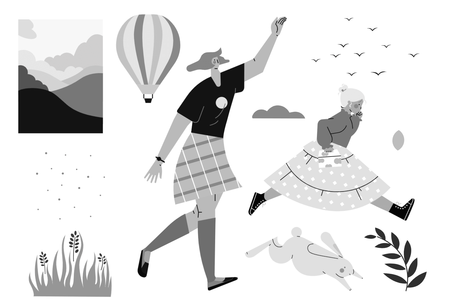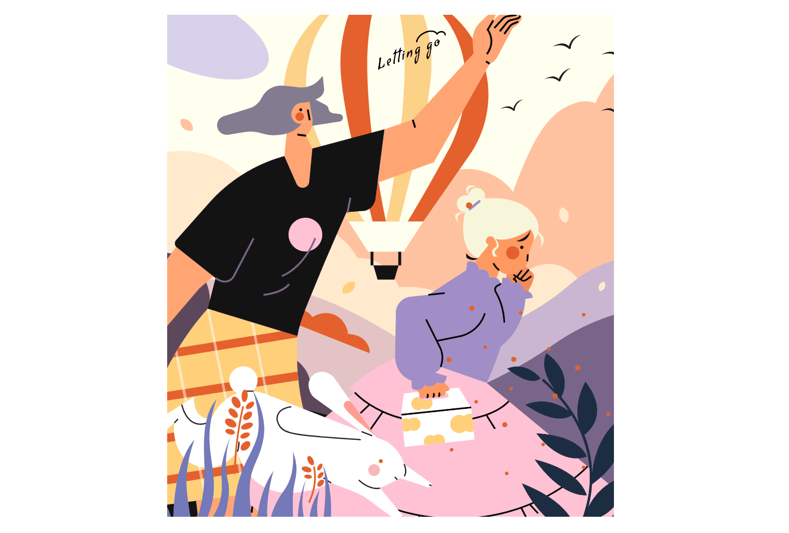 使用元素:人物、动物、背景图形、植物、形状、氛围 | 配色风格:紫陌芬芳